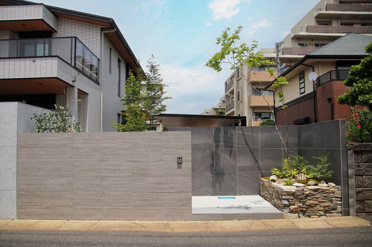 エバーアートボード戸隠石積みカーポートSCタイルテラスボックスウッド